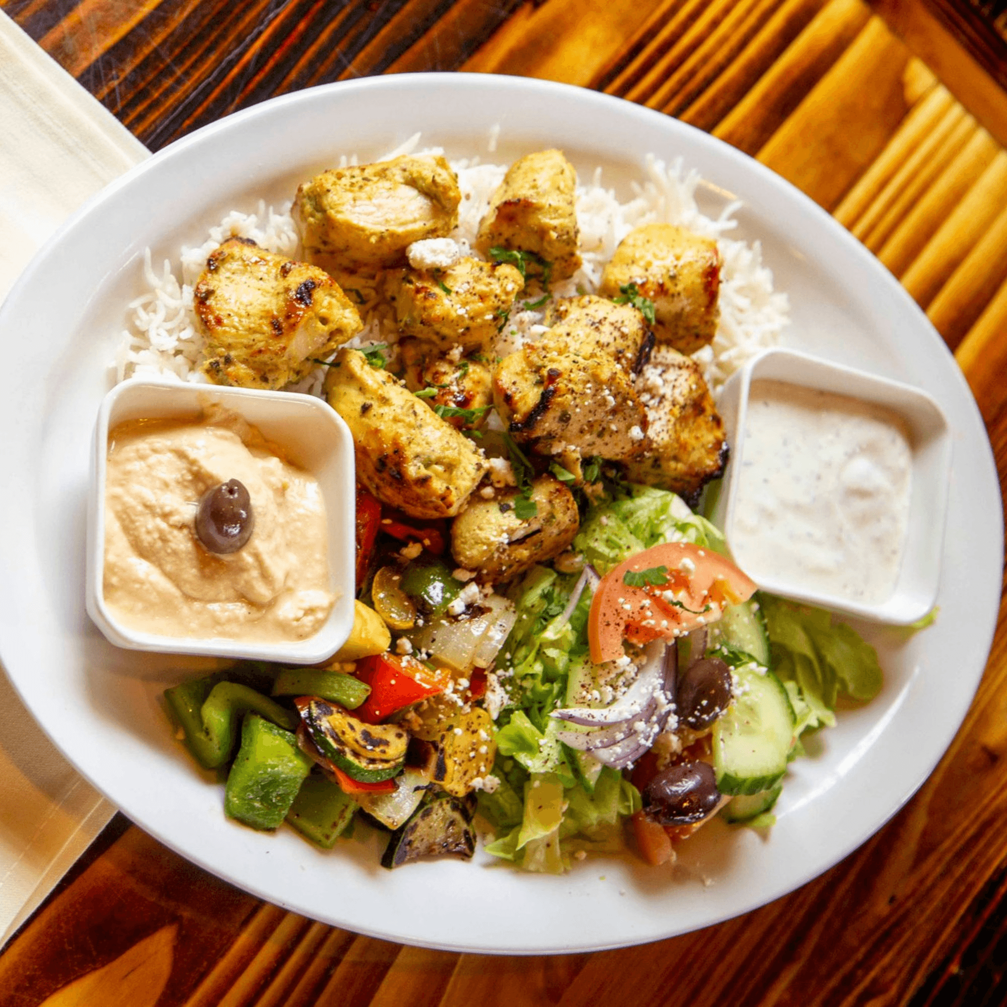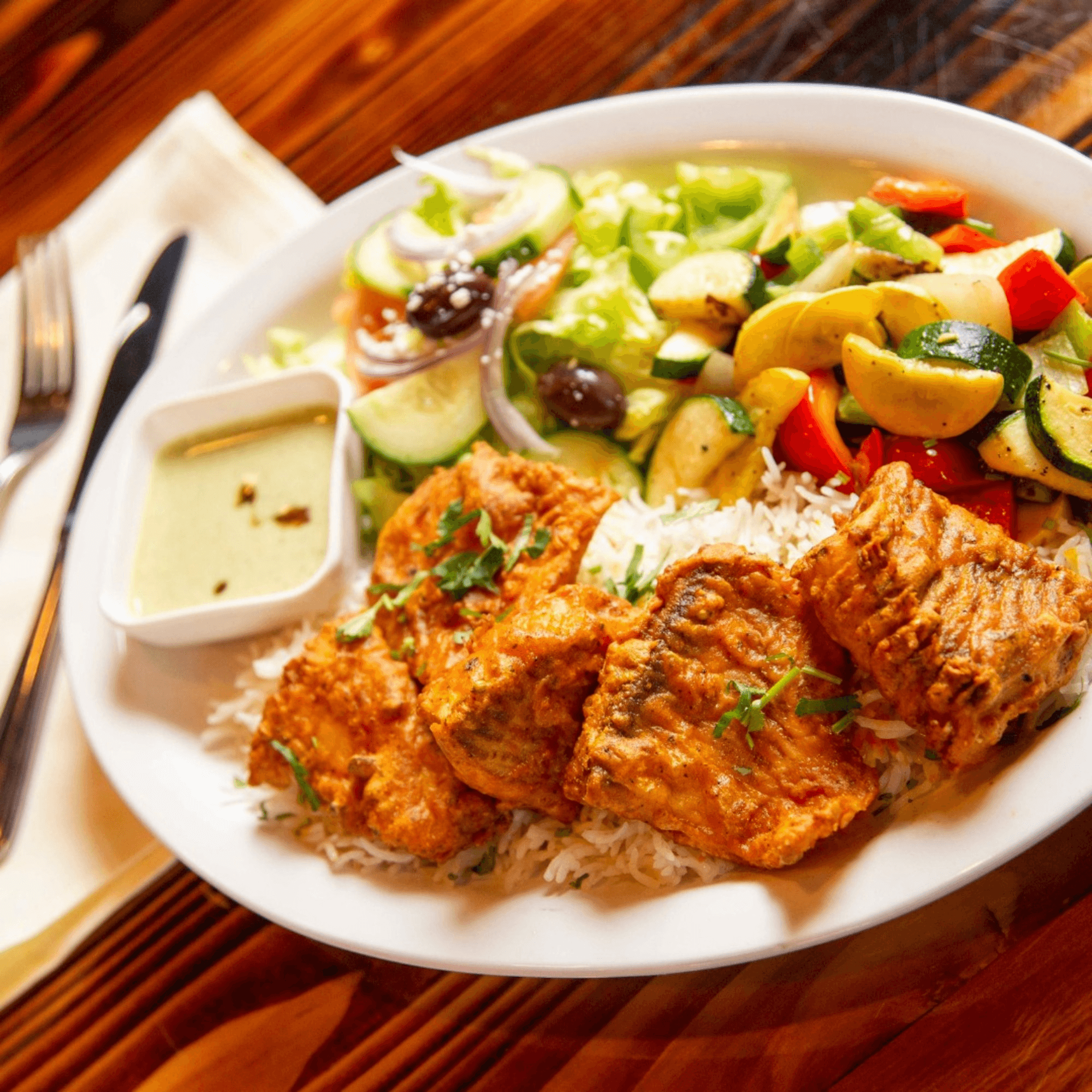 Our lunch menu is available daily from 11:30 am – 4:00 pm, offering both vegetarian and meat options. Freshly prepared and thoughtfully balanced, each dish brings the bold flavors of Indian and Mediterranean cuisine straight to your table. Whether you dine in or take it to go, our lunch selections are crafted to energize your day with satisfying, wholesome options.